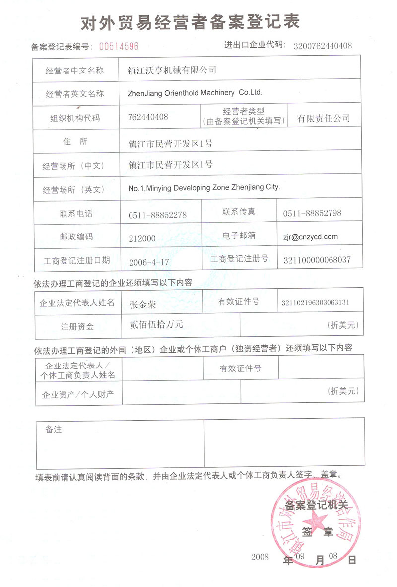 對(duì)外貿(mào)易經(jīng)營(yíng)者備案登記表